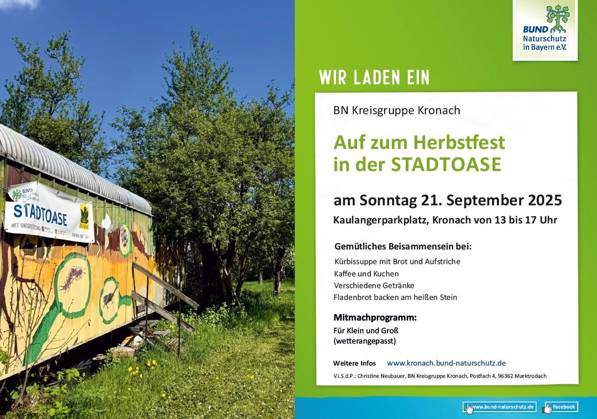 Um Anmeldung wird gebeten bis Do. 22.09. unter 09261/94404 oder kronach@bund-naturschutz.de