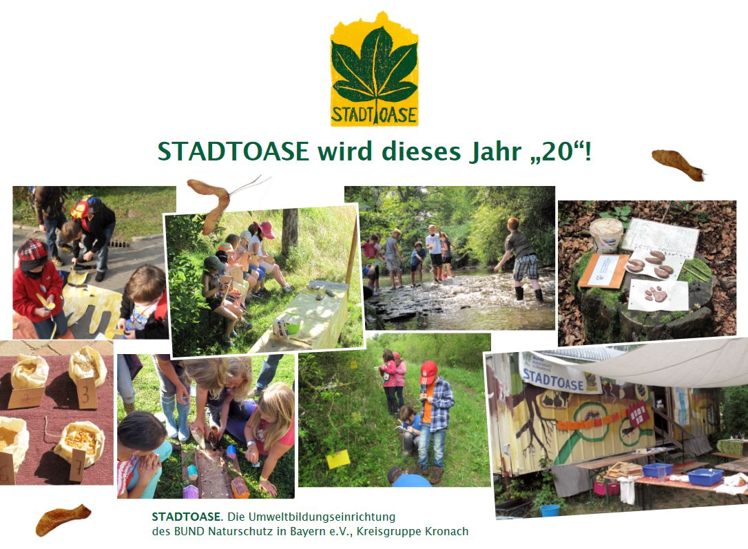 STADTOASE, die Umweltbildungseinrichtung des BUND Naturschutz in Bayern e. V., Kreisgruppe Kronach feiert ihr 20jähriges Bestehen und lädt zu einem Sonntagnachmittag in die geöffnete STADTOASE ein.