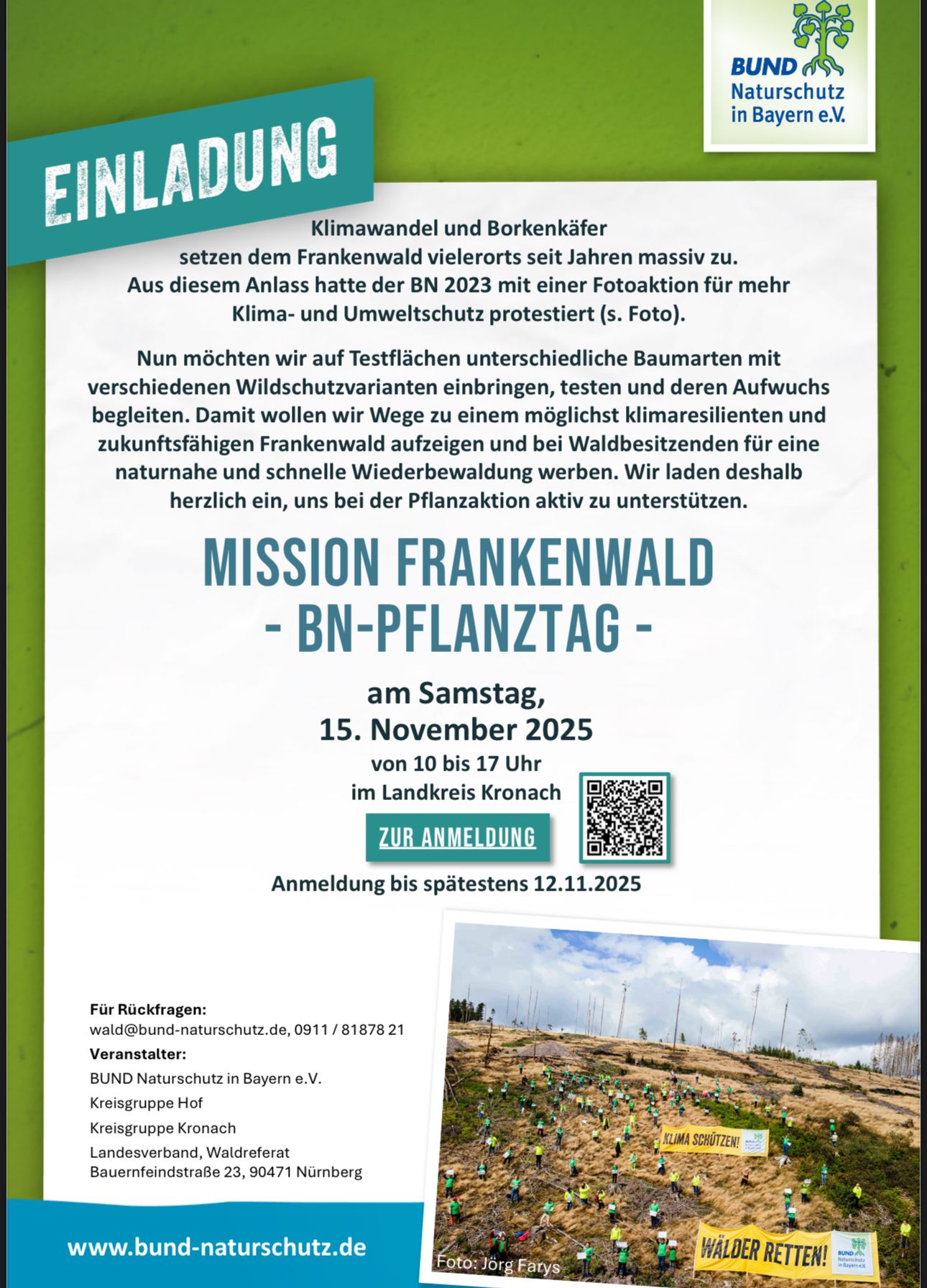 Anmeldung: Bis 02.10.2025 per mail an kronach@bund-naturschutz.de