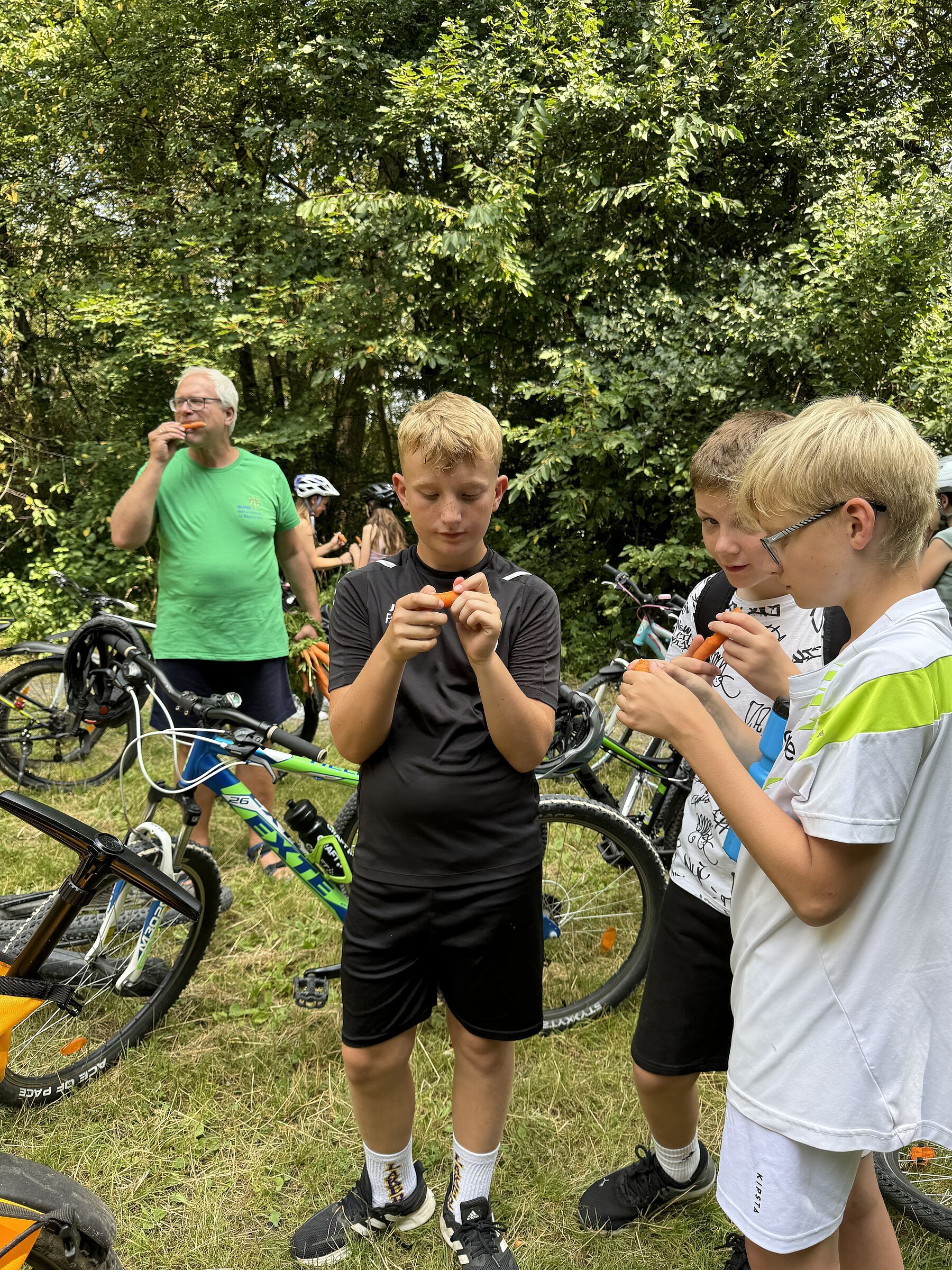 Ein abenteuerlicher Abstieg entlang der Felskante brachte die Gruppe wieder zurück zu den Fahrrädern und dann ging es über Flur- und Radwege zurück zum Zeltplatz.